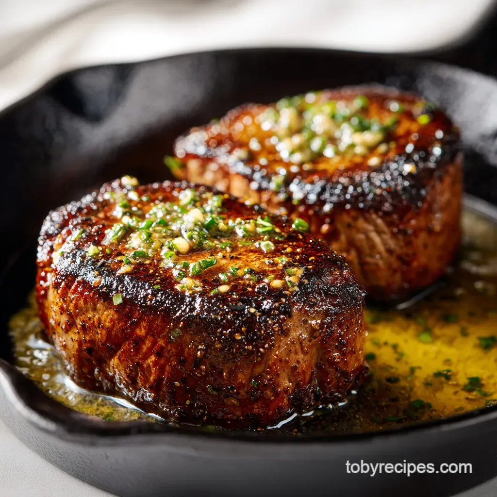 - Searing Filet Mignon in Cast Iron Pan with Garlic Butter
